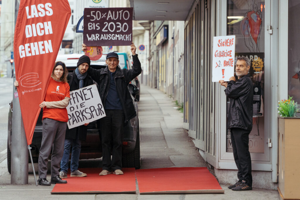 Roter Teppich fürs zu Fuß Gehen bei #WORSTofGÜRTELGEHSTEIG-Demo